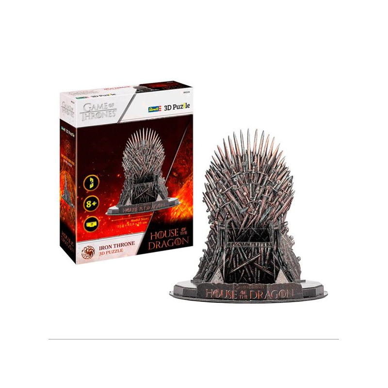 Revell 3D Puzzle Iron Throne: House of the Dragon. Puzzle 3D del Trono de Hierro de una de las series de televisión más exitosas: el Trono de Hierro es el icónico asiento del poder en la serie de HBO "House of the Dragon". Está formado por las espadas de aquellos que han caído al ascender a él, y el que se sienta en este trono gobierna todo Poniente y los Siete Reinos sobre todo Poniente y los Siete Reinos. Este puzzle 3D es una réplica fiel del trono. Es perfecto para cualquier fan de la serie Juego de Tronos.
