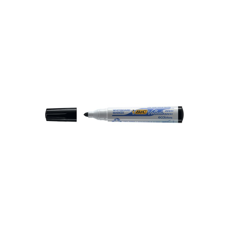 Marcador para pizarra blanca con cuerpo de plástico y capuchón ventilado del color de la tinta (a base de alcohol). Punta de fibra acrílica de 4,95 mm, bloqueada y resistente a la presión, con un trazo de 1,4 mm. Un marcador ecolutions ® de borrado óptimo e inmediato aún después de varios días.