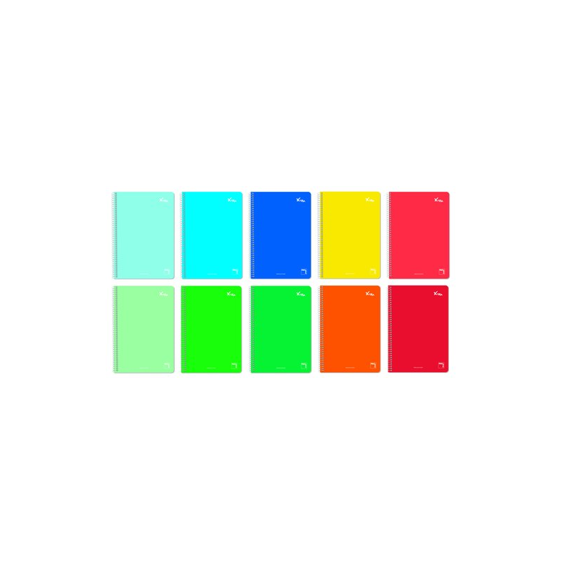 Bloc con cubierta de cartón contracolado de 800 gramos en color y anverso plastificado con código de barras. En su interior cuenta con 80 hojas de papel de 60 gramos. Todo ello encuadernado con una espiral de alambre blanco nylonizado.