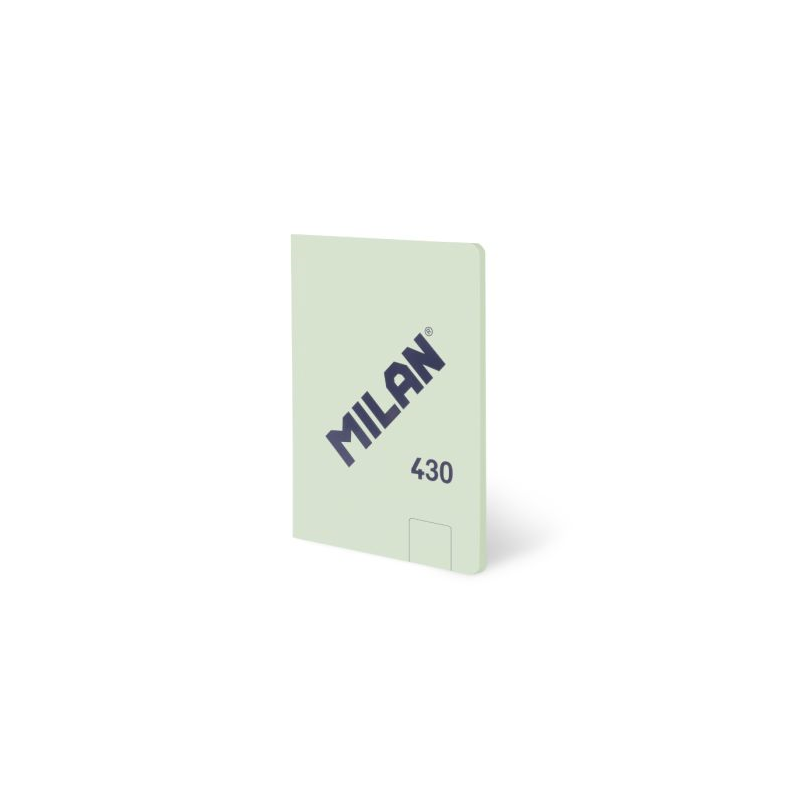 Libreta A6 encolada (sin grapas) y tapa flexible. 48 hojas de papel liso, en blanco. Papel de 95 gr/m² de alta calidad. Cubierta de cartón flexible y logotipo MILAN brillante en relieve. Color verde. Colección 430 since 1918, inspirada en los colores y diseño originales de las gomas de borrar MILAN, fabricadas en España desde 1918. Medida A6 (10,5 x 14,8 x 2 cm).