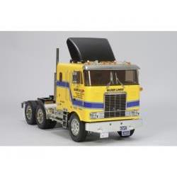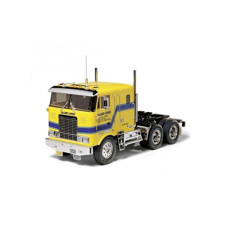 Producto: Camión RC estadounidense Globe Liner con cabina sobre camión BS a escala 1/14.Tamiya ha plasmado la atractiva apariencia de los camiones tractores en un "Globe Liner" eléctrico a escala 1/14. La tracción trasera de doble eje utiliza ejes de hélice rígidos para un rendimiento suave.Revestimiento de globo ¡Advertencia! No apto para menores de 14 años.Características:- Longitud: 19,69 pulgadas (500 mm) Ancho: 7,20 pulgadas (183 mm)- Distancia entre ejes: 13,78 pulgadas (350 mm)- Banda de rodadura F/R: 156/138 mm- Ancho de los neumáticos: F/R ambos 22 mm- Peso: 5,82 lbs. (2640 g)- Relación de transmisión: 1.ª marcha 32,49:1, 2.ª marcha 17,76:1, 3.ª marcha 10,66:1- Ruedas y neumáticos: Cromados/Radiales