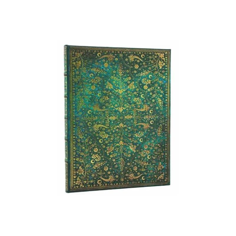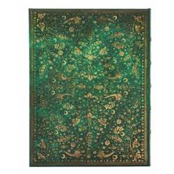 El diseño Flor Esmeralda nos traslada a la Ilustración, una época de expansión del conocimiento. Esta cubierta, que recrea una encuadernación irlandesa de 1760, está decorada con delicados motivos vegetales y cornucopias que evocan la prosperida de las cosechas y la abundancia de la naturaleza.