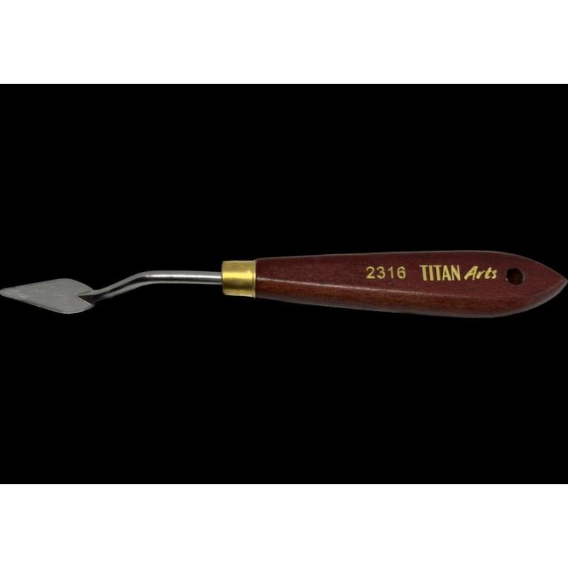 Espátula nº 2316 de punta redondeada adecuada para mezclar la pintura en la paleta. Tamaño pequeño ideal para trabajr detalles en el soporte. Hoja de acero flexible y mango de madera barnizada.