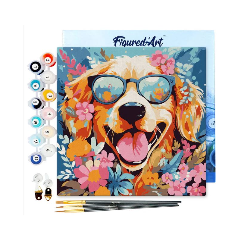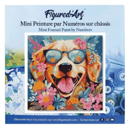 Detalles del producto: Mini Lienzo Pintura por Números Perro de fantasía y flores | Método de realización: pintura por números | Tamaño: 20 x 20 cm | Soporte: lienzo de lino numerado, montado en bastidor de madera | Incluye: 1 lienzo de lino numerado; 3 pinceles de nylon de diferentes tamaños; botes de pintura acrílica numerados; 1 fotografía en miniatura del resultado final; 2 tornillos + 2 ganchos para montaje en pared