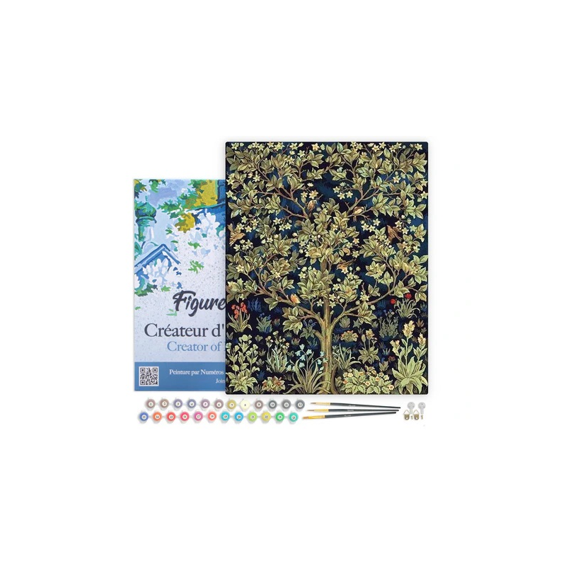 Detalles del producto: Lienzo Pintura por Números Árbol Feliz | Método de realización: pintura por números | Tamaño: 40 x 50 cm | Soporte: lienzo de lino numerado, montado en bastidor de madera | Incluye: 1 lienzo de lino numerado; 3 pinceles de nylon de diferentes tamaños; botes de pintura acrílica numerados; 1 fotografía en miniatura del resultado final; 2 tornillos + 2 ganchos para montaje en pared