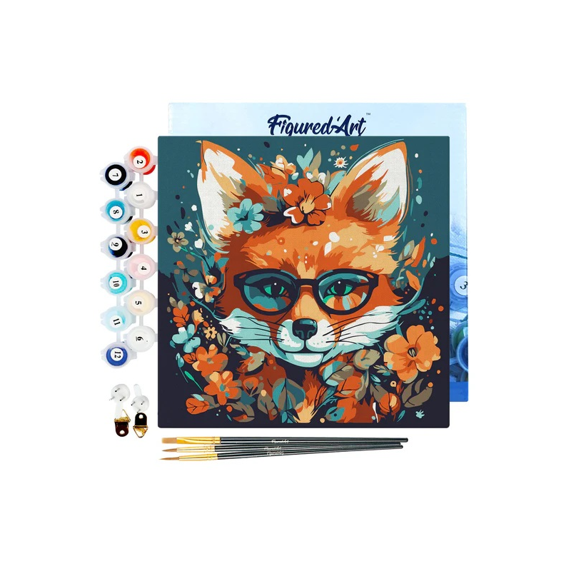 Detalles del producto: Mini Lienzo Pintura por Números Zorro de Fantasía | Método de realización: pintura por números | Tamaño: 20 x 20 cm | Soporte: lienzo de lino numerado, montado en bastidor de madera | Incluye: 1 lienzo de lino numerado; 3 pinceles de nylon de diferentes tamaños; botes de pintura acrílica numerados; 1 fotografía en miniatura del resultado final; 2 tornillos + 2 ganchos para montaje en pared