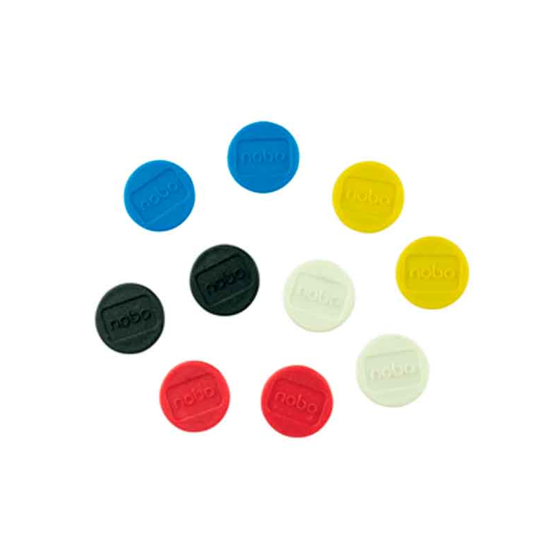 Imanes magnéticos para pizarra blanca Nobo, paquete de 10 imanes de colores de 24 mm