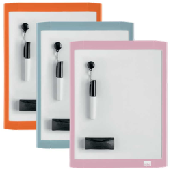 Esta mini pizarra magnética viene en una variedad de colores de marco, con un rotulador y un borrador de pizarra a juego. Con un elegante marco en una variedad de colores, rosa, azul, negro o verde. Cualquiera que sea el color que recibas, puedes estar seguro de que se adaptará a cualquier entorno. Estas divertidas y coloridas pizarras son perfectas para el montaje en la pared o para usar como pizarra portátil, y se completan con almohadillas adhesivas de montaje en pared e imanes para usar en superficies magnéticas como la nevera. Móntalas en orientación vertical u horizontal. Tamaño: 216x280 mm.