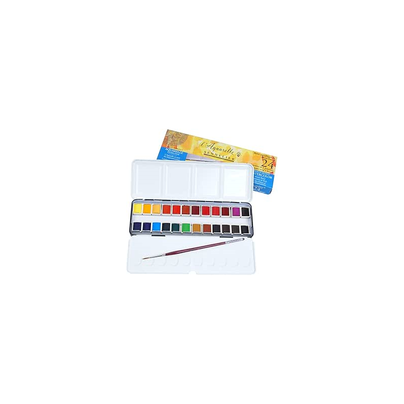 Caja de metal - 24 media pastillas Acuarela extrafina + 1 pincel
