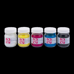 Contenido: 5 botes de 50ml (100 Blanco – 205 Amarillo limón (primario) – 397 Rosa permanente (magenta) – 501 Azul claro (cian) – 737 Negro neutro).