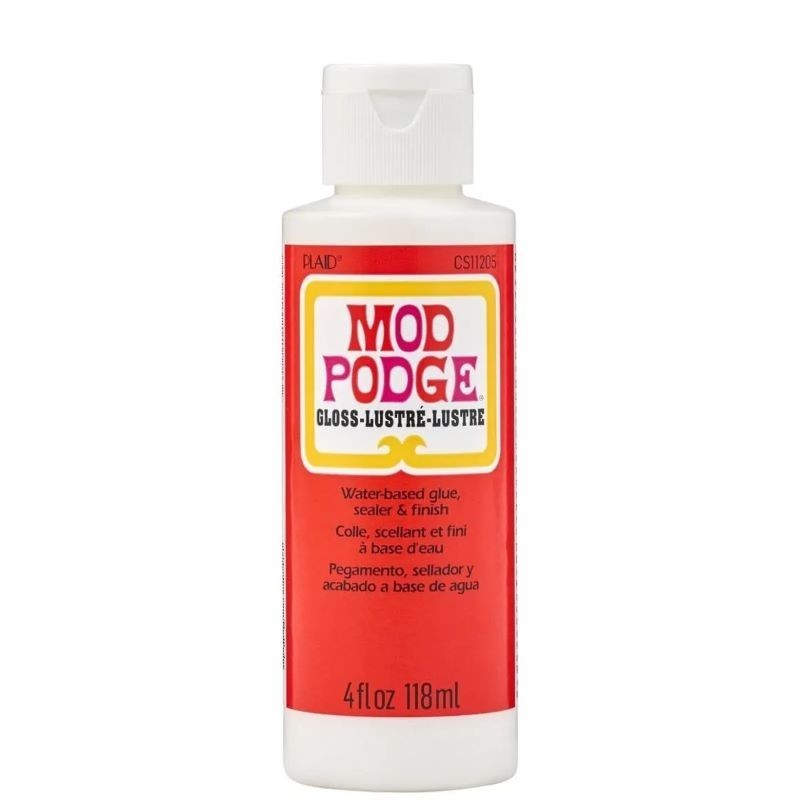 Detalles del producto: Mod Podge Brillo | Cantidad: 118 ml | Acabado brillante tipo barniz | Secado rápido y transparente | Apto para decoupage, collage, scrapbooking y manualidades