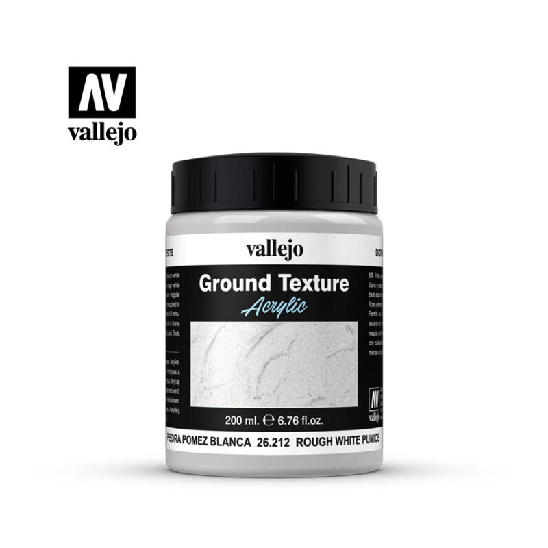 Piedra Pómez Blanca es una pasta espesa de resina, blanco de titanio y piedra pómez natural, con un acabado áspero blanco. Apto para crear superficies y terrenos irregulares, relieves y picos.